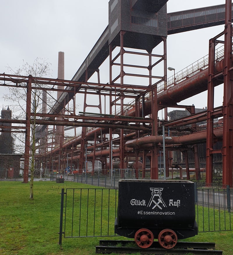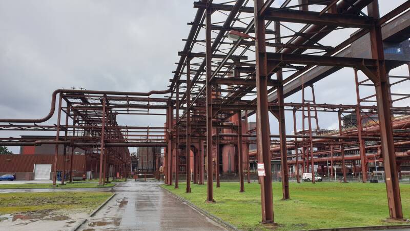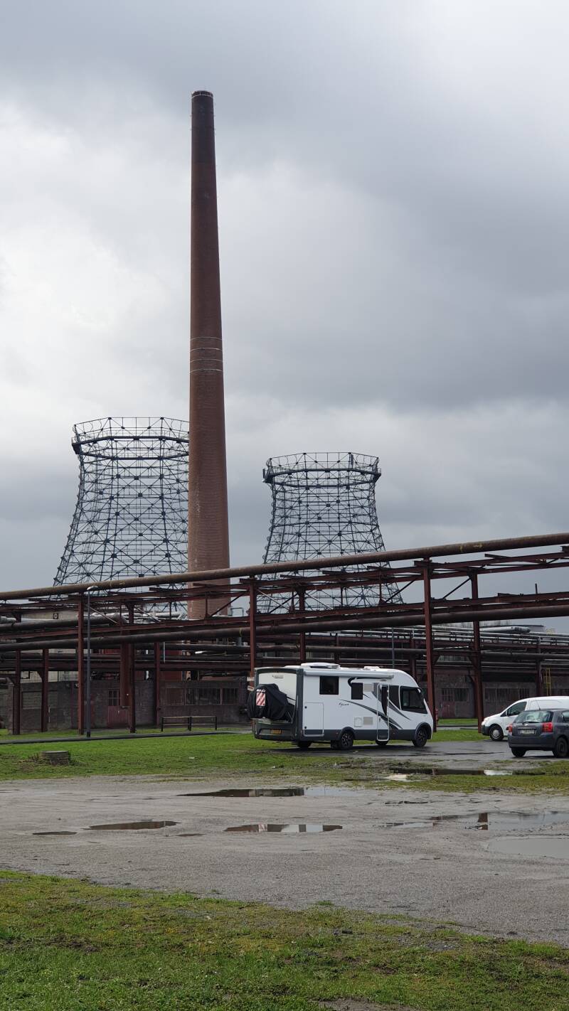 Na een koude winderige natte nacht werden we wakker met regen, het zou vanmorgen droog blijven dus wilden we naar de Kokerei in Essen fietsen maar besloten toch met de Camper er naar toe te rijden.