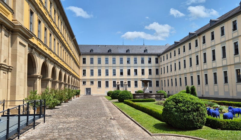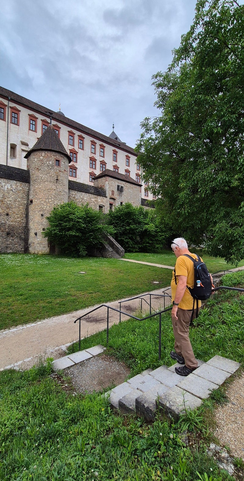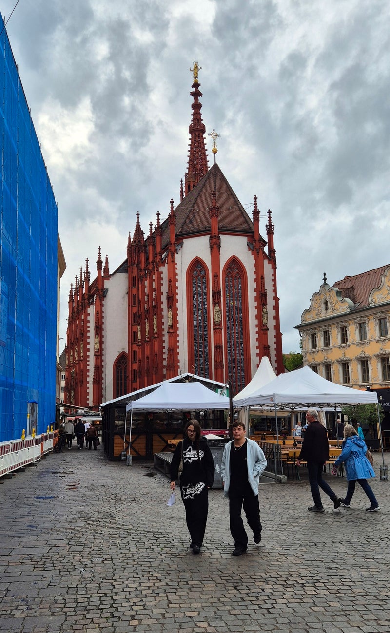 Vandaag stond in het teken van het verkennen van Würzburg, een stad vol historie en indrukwekkende architectuur. We begonnen onze wandeling met een stevige klim naar Festung Marienberg, een imposante vesting die hoog boven de stad uittorent. Bij aankomst passeerden we een prachtige poort, een symbolische toegang tot eeuwen aan geschiedenis. Festung Marienberg was ooit de residentie van de Würzburger Fürstbischöfe en heeft door de tijd heen meerdere uitbreidingen en versterkingen ondergaan. De oudste delen dateren uit de 11e eeuw, waaronder de Marienkirche, een van de oudste kerken in de regio. In de 17e eeuw na de Zweedse bezetting werd de vesting omgebouwd tot een barokfort. Tegenwoordig is het een geliefde toeristische bestemming, onder andere dankzij het Museum für Franken, dat een indrukwekkende collectie kunstwerken herbergt, wij hebben deze niet bezocht. Vanaf de vesting heb je een adembenemend uitzicht over Würzburg en de omliggende wijngaarden. We hadden kaartjes gekocht om de vesting van binnen te bekijken, maar toen we ons bij de rondleiding aansloten, bleek de groep grotendeels uit kinderen te bestaan. Aangezien we de vesting liever in ons eigen tempo wilden ontdekken, besloten we af te zien van de tour. Via een schilderachtig park liepen we terug naar de Friedensbrücke, genietend van de groene omgeving. Onze volgende stop was de St. Kiliansdom, een indrukwekkende romaanse kathedraal en een van de grootste in Duitsland. De bouw begon in 1040 en werd voltooid in 1237. De kerk is gewijd aan Sint Kilian, de Ierse missionaris die het christendom naar Franken bracht. Met zijn imposante dubbeltorengevel en een lengte van 105 meter is het een indrukwekkend bouwwerk dat eeuwen aan geschiedenis weerspiegelt. Binnen bewonderden we de barokke decoraties, het prachtige hoogaltaar en de Schönbornkapelle, ontworpen door Balthasar Neumann. Ondanks de zware beschadigingen in de Tweede Wereldoorlog, werd de kathedraal volledig hersteld en straalt hij sinds 1967 weer in volle glorie. Daarna wandelden we naar de Würzburger Residenz, een meesterwerk van barokke architectuur, gebouwd tussen 1720 en 1744. Dit voormalige paleis van de prins-bisschoppen von Schönborn is een van de belangrijkste barokke paleizen van Europa. Het interieur is verrijkt met spectaculaire plafondschilderingen van Giambattista Tiepolo, waaronder het grootste fresco ter wereld in het monumentale trappenhuis. Hoewel het paleis tijdens de Tweede Wereldoorlog zwaar werd beschadigd, heeft een zorgvuldige restauratie ervoor gezorgd dat het zijn pracht heeft behouden. Sinds 1981 prijkt het op de UNESCO-werelderfgoedlijst. Omdat we het paleis enkele jaren geleden al van binnen hadden bekeken, besloten we dit keer de hoftuinen te verkennen een groene oase vol symmetrie en rust. Met het idee om de ochtend af te sluiten in een sfeervolle biergarten, liepen we naar een bekende plek, maar tot onze teleurstelling bleek deze gesloten. Daarom vervolgden we onze wandeling naar Dominikanerplatz, waar we genoten van een lunch—al viel deze wat tegen. Uiteindelijk brachten we via een omweg onze route ten einde en keerden we terug naar de camper. Het was een prachtige dag, met af en toe een zonnetje en vooral geen regen.