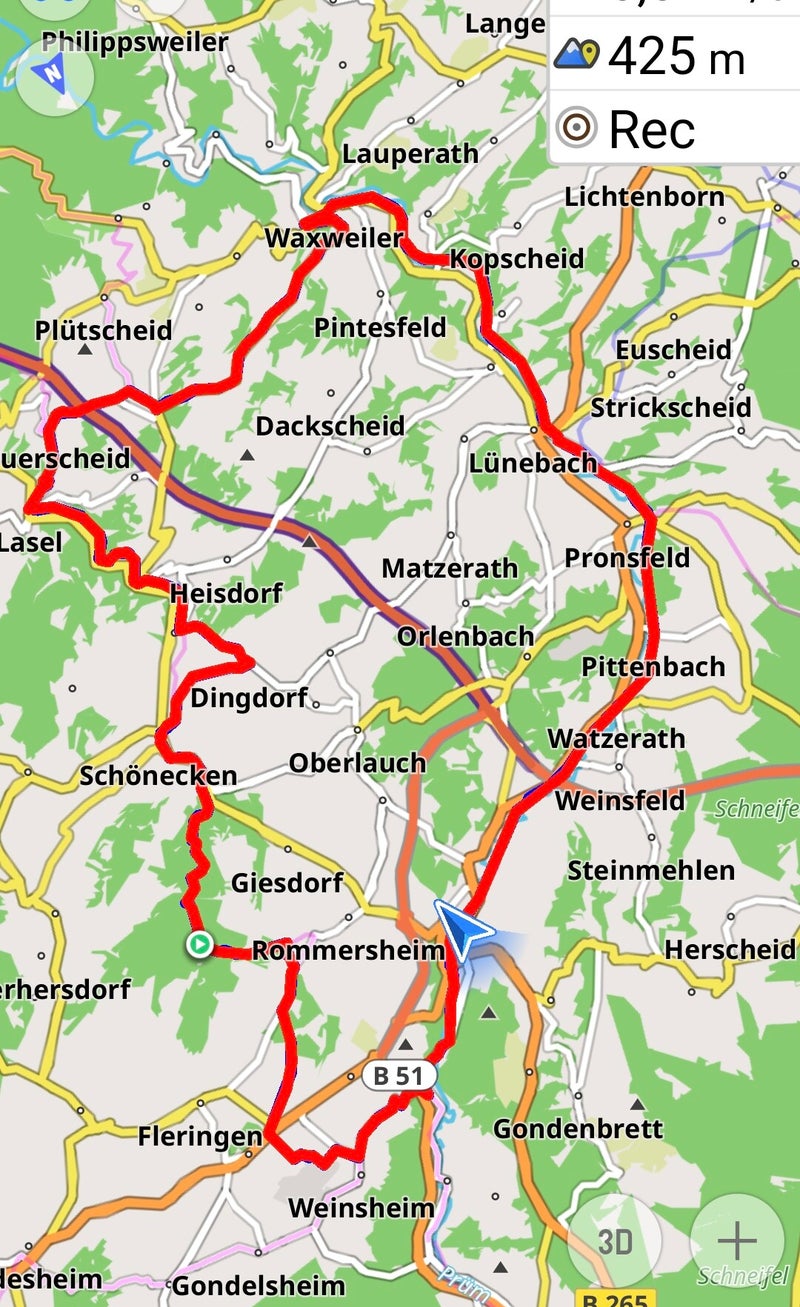 Na een rustige nacht stapten we na het ontbijt op de fiets voor een tocht van 55 kilometer door de prachtige omgeving van Prüm. Het zou een uitdagende rit worden, met 630 meter als hoogste punt en 340 meter als laagste punt. Het eerste deel van de route voerde ons over een oude spoorlijn. In Pronsveld ontdekten we nog enkele overblijfselen van een vervlogen tijdperk: een voormalig spoorwegknooppunt met borden die de geschiedenis van de lijn uitleggen. Een oud rijtuig, omgebouwd tot een gezellig restaurant, en een statige locomotief gaven ons een indruk van hoe het hier vroeger was. Kort daarna begon de weg flink te stijgen en kwamen we op het Eifel-Ardennen fietspad terecht. Hier werden we beloond met een panoramisch uitzicht in alle richtingen aanschouwend hoe het landschap zich uitstrekt in glooiende heuvels en beboste gebieden. Dit was ongetwijfeld een van de mooiste stukken van de route. Na een afdaling bereikten we de Schönecker Schweiz, een schitterend bosrijk gebied. Een beekje kronkelde zich een weg door de vallei, terwijl de beboste hellingen kleurrijk oplichtten door een overvloed aan wilde bloemen. De geur van daslook hing in de lucht, zijn kenmerkende ui-aroma al van ver waarneembaar. Het was een waar paradijs om doorheen te fietsen. Na deze prachtige tocht lieten we de benen rusten en genoten we in de middag van de zon.
