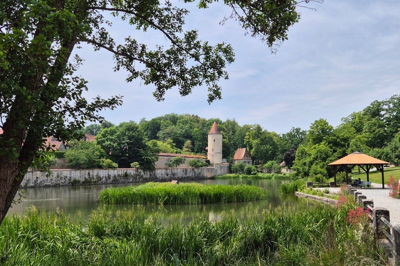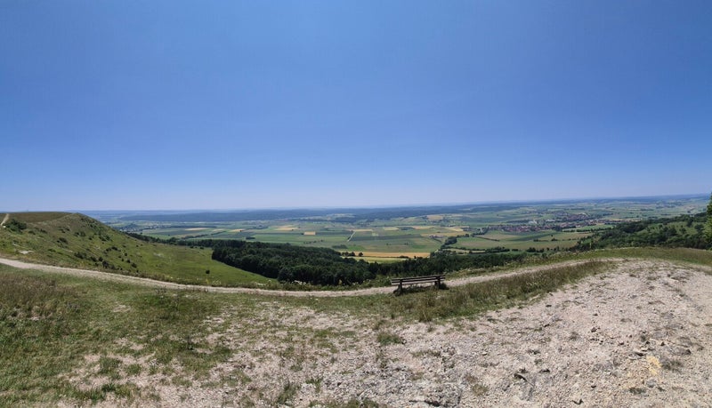 Vandaag besloten we nog een dag te blijven om nog een mooie fietstocht te gaan maken. van ongeveer 47km. Bij Aufkirchen zijn we de Hesselberg op gefiets, een pittige klim van 428 naar 677m. maar eenmaal boven werden we beloond met een prachtig uitzicht. Hier namen we even de tijd om een broodje te eten en van het panorama te genieten. Bergafwaarts ging behoorlijk snel en je moest goed en voorzichtig remmen om te zorgen dat je remmen niet al te heet werden, was wel een beetje spannend. De Hesselberg (689 m) is de hoogste berg van Midden-Franken, gevormd in de Jurazeit. Archeologische vondsten wijzen op bewoning sinds de Steentijd, en de Kelten gebruikten de berg als verdedigingsplaats. In de middeleeuwen was er een burcht, en in de 20e eeuw werd de berg gebruikt voor politieke bijeenkomsten. Na onze fietstocht brachten we een bezoek aan Dinkelsbühl, waar we eerst wat boodschappen hebben gedaan bij de Aldi. In de Altstadt hebben we nog een lekker ijsje gegeten. Terug bij de camper konden we nog lekker buiten zitten, een fijne afsluiting van een sportieve en mooie dag. Link komoot: https://www.komoot.com/nl-nl/tour/2316666399?share_token=aAJF8YpXF87pzqCebn5t2k94n315FY0jITClCtc9G5Xci6zD2o&ref=wtd