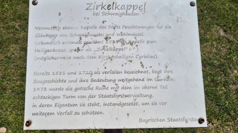 Onderweg kwamen we langs de Zirkelkappel, een historische ruïne bij Schwaighausen in Beieren, die al in 1535 werd vermeld. De naam verwijst mogelijk naar de heilige Cyriakus. De kapel raakte in verval en werd in de Tweede Wereldoorlog beschadigd, waardoor vandaag de dag alleen de muren en een toren nog zichtbaar zijn.