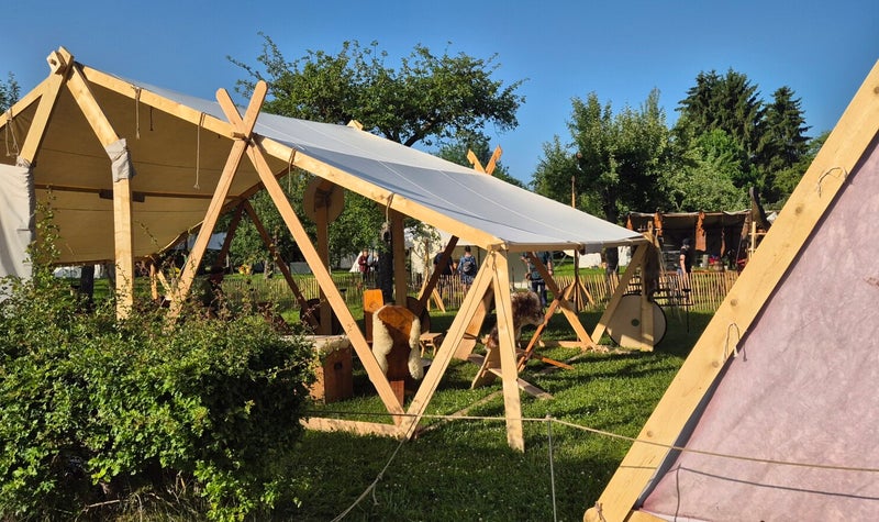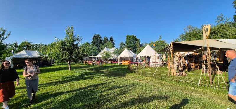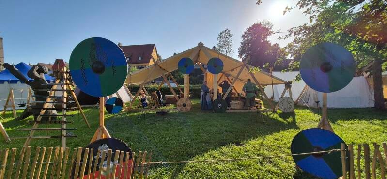 Na het eten maakten we een wandeling naar de stadsmuren van Dinkelsbühl, waar een middeleeuwse nederzetting was nagebouwd. Tenten, mensen in historische kleding en allerlei spelletjes voor kinderen brachten de sfeer van vroeger helemaal tot leven een leuk en verrassend tafereel. Hierna namen we een omweg terug naar de camper, genietend van de bijzondere sfeer en de rustige avond.