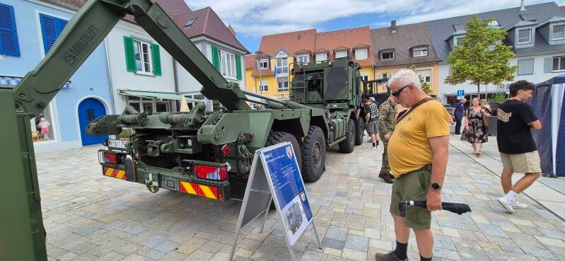 Toen we weer afdaalden naar het stadscentrum, kwamen we op de markt terecht bij een bijeenkomst van veteranen. We besloten neer te strijken op een terras, waar we een pilsje dronken en genoten van heerlijke Flammkuchen.