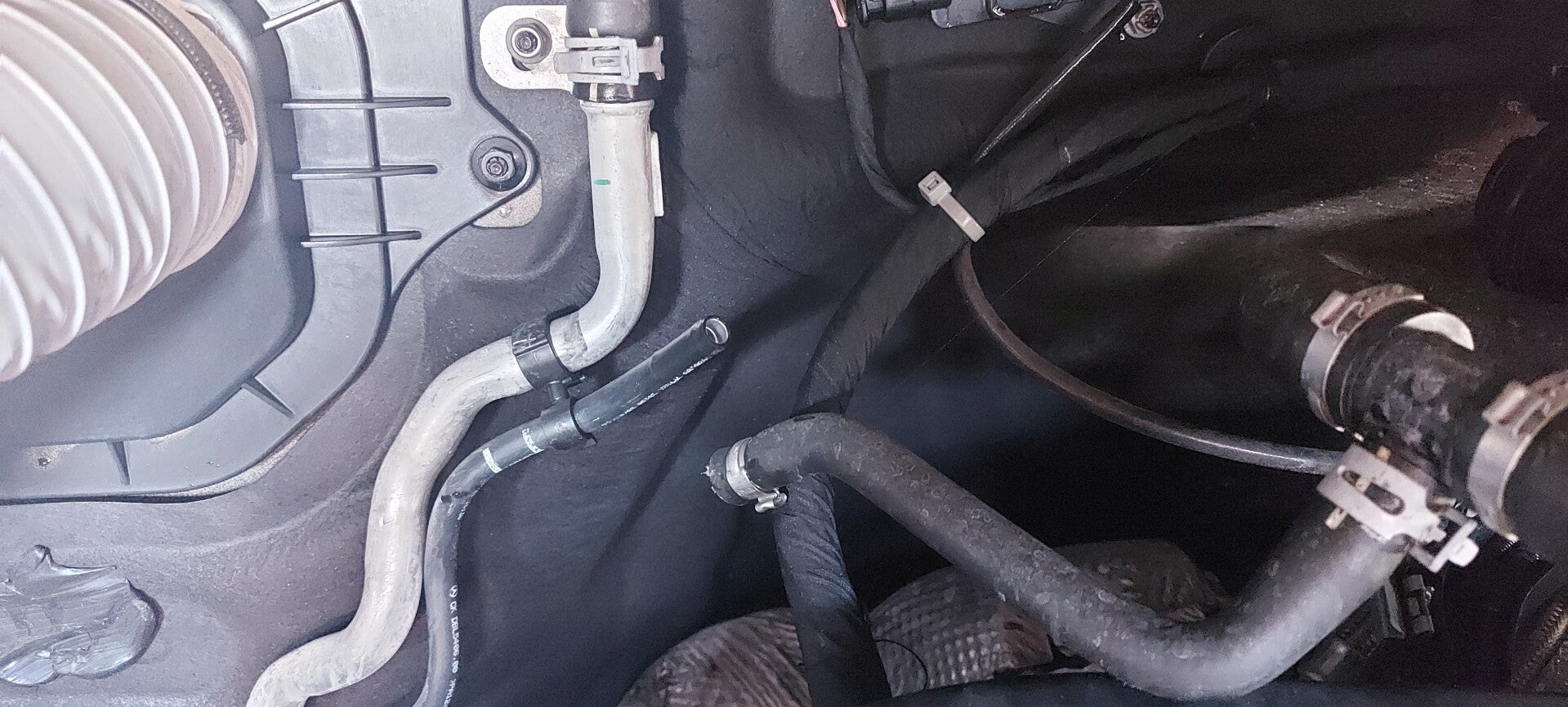Om 07:30 ging de receptie van de garage open. Tot onze verrassing wisten ze niets van onze komst, ondanks dat de verzekering had bevestigd dat er een afspraak was gemaakt. Na enig overleg kwamen ze terecht bij de Meister, dezelfde monteur die Jorrit zaterdag al had gesproken toen hij op de fiets naar de garage ging. Bij het openen van de motorkap zag de Meister direct het probleem: een slang was losgeraakt, waarschijnlijk door een slechte montage bij Hymer. Gelukkig geen doorgeknaagde slangen, wat we even vreesden.