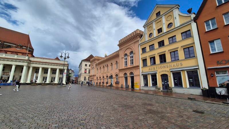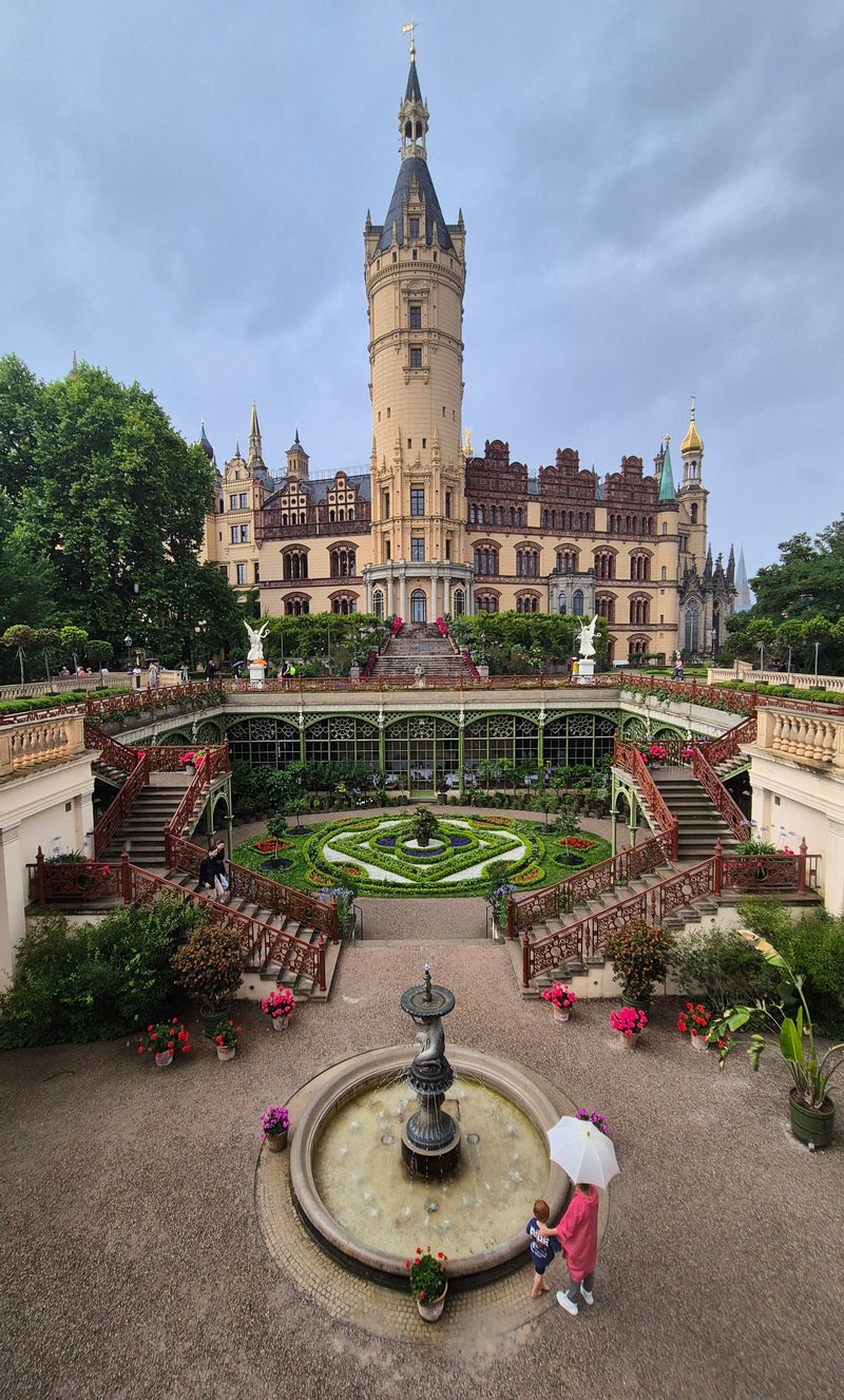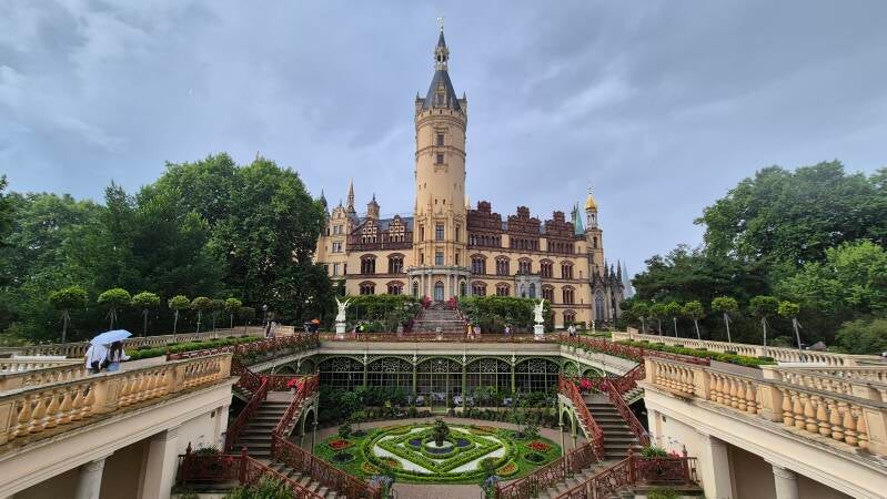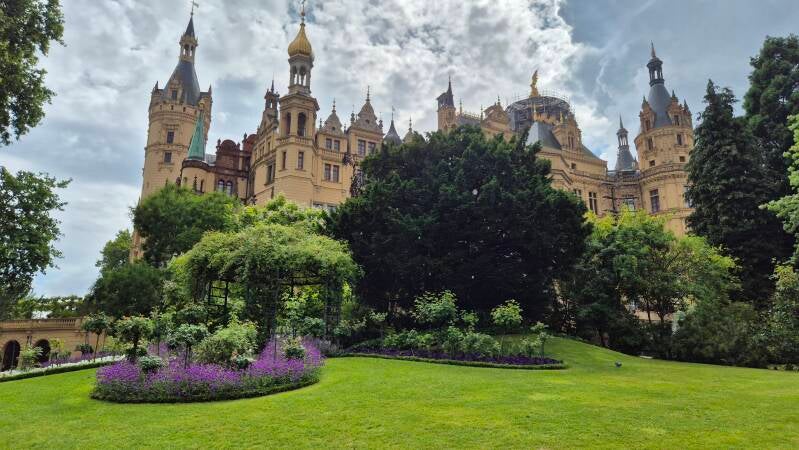 Uiteindelijk kwamen we uit bij het Schweriner Schloss, een sprookjesachtig kasteel op een eiland in het Schweriner Meer het iconische middelpunt van de stad en tegenwoordig de zetel van het parlement van de deelstaat.