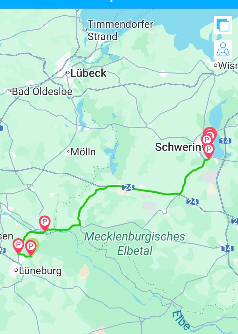 Vanmorgen zijn we vertrokken richting Schwerin, waar we voor twee nachten een plek hebben gereserveerd op CP Hangar 19 (CC 66220).