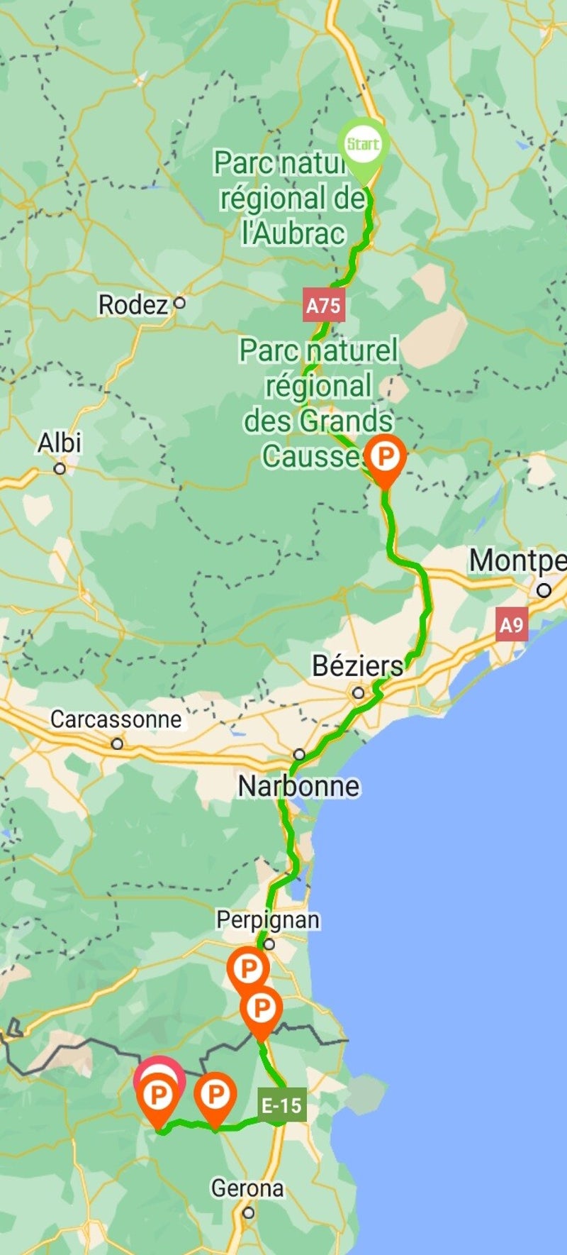Het blijft een mooie weg de A75. Bij Beziers hebben we de tolweg de A9 tot aan de Spaanse grens genomen kosten €23,20 (tarief klasse3 )