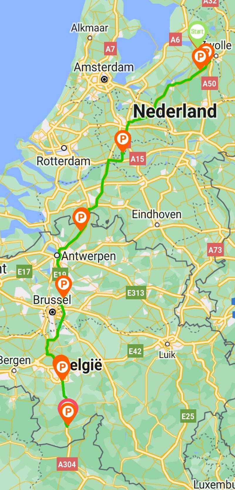 Vanmorgen eerst de auto maar thuis afgeleverd en daarna met de camper verder gereden via Breda naar Antwerpen en Brussel, het was erg druk met personen auto`s en het viel ons op dat er bijna geen vrachtwagen reden, dit hadden wij niet verwacht.