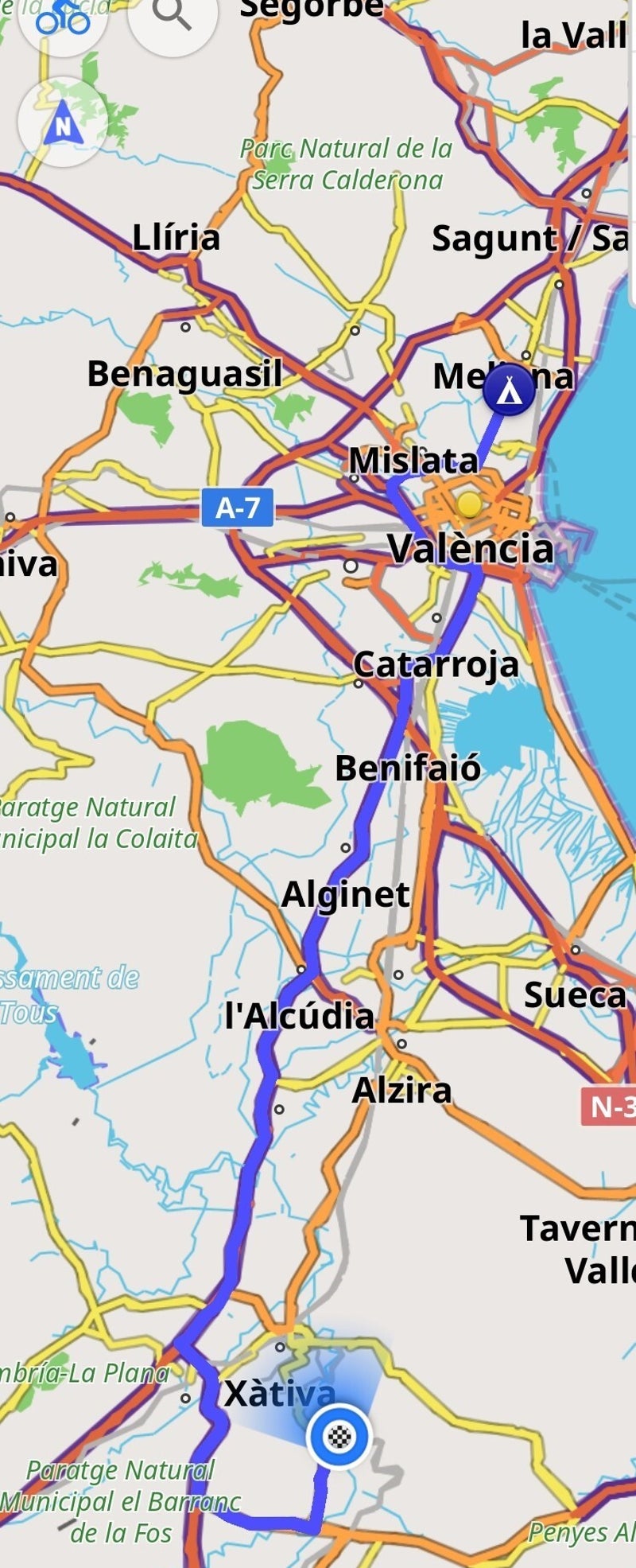 Na een route door VAalencia zijn we verder gereden over A7 en daarna verder over de CV60.