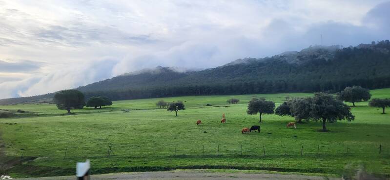 Verderop werd het landschap heuvelachtiger en ruiger, met een begroeiing van voornamelijk kurkeiken en olijfbomen.