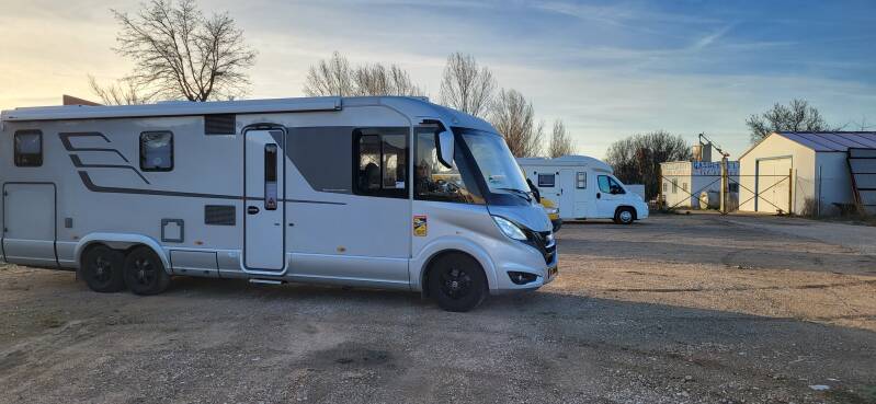 We zijn via de E07 naar Zuera gereden waar we op een parking (CC101664) hebben overnacht, je kan hier je toilet en vuil water legen en schoonwater tanken.