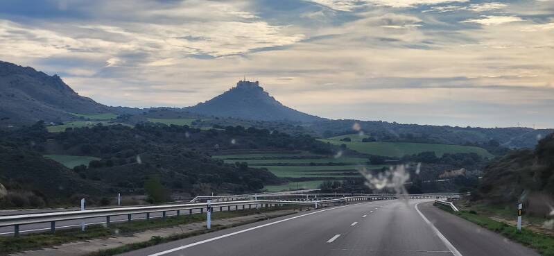Via de N211 naar de A23 de route naar Zaragoza vervolgd. We reden door een soort woestijngebied met rode en gele steen massa's.