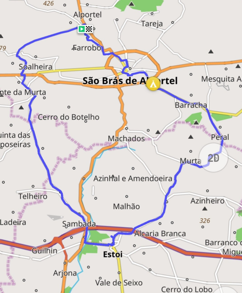 Vertrokken richting Elvas. We hebben een stukje van de N2 gereden, een mooie route door de heuvels begroeid met kurkeiken en Eucalyptus.