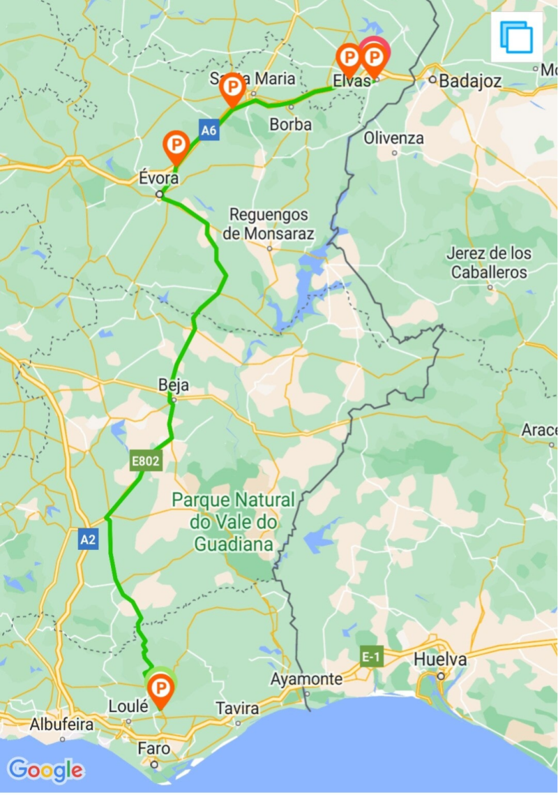 Bij Beja zijn we afgeslagen naar weg de E802 waar we na Evora de tolweg de A6 hebben genomen richting Elvas kosten €14,90. Evora is een mooie stad waar veel te bekijken is zoals de kerk met botten en een Romeinse tempel maar dat hadden we al in eerdere jaren gezien dus hebben we dat deze maal maar overgeslagen.