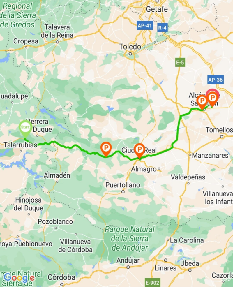 Deze dag reden we naar parking De Molinos (CC 76805) in Campo de Criptana, waar we Hans en Marian zouden ontmoeten. Zij waren, net als wij, met de camper op vakantie in Spanje.