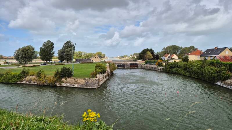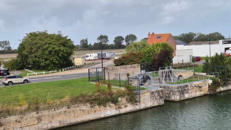 Na een stormachtige nacht met hevige regenval werden we wakker met een waterig zonnetje aan de horizon. Na het ontbijt hebben we de camperklaar gemaakt: het toilet en de tank met zwart water geleegd. Vandaag stond Gravelines op onze planning (CC8366, €7,50): een parkeerplaats met prachtig uitzicht op de jachthaven en de rivier de Aa.