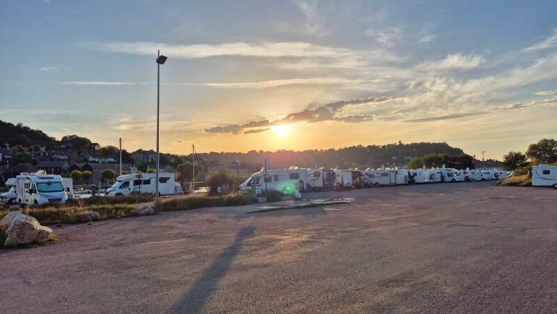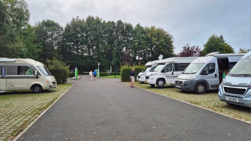 Bij aankomst bleek er echter iemand aan het werk, die ons vertelde dat we hier niet mochten parkeren omdat onze camper drie assen heeft.