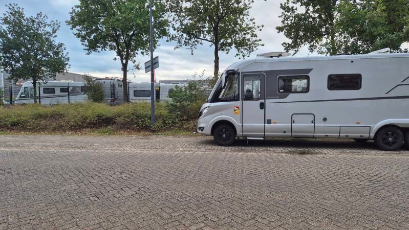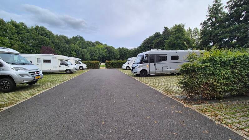Na het ophalen van de camper vertrekken we meestal naar de Schildkamp. Daar gebruiken we het parkeerterrein om de camper rustig en overzichtelijk in te ruimen. Helaas liep het dit keer anders: het parkeerterrein was vol en we moesten de camper meerdere keren verplaatsen omdat andere auto’s wilden vertrekken. Geen ideale start van de reis.