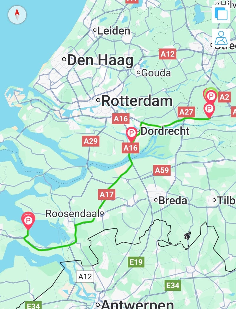 Net buiten Yerseke kregen we echter te maken met een onverwachte situatie: de weg was volledig afgesloten door een ernstig ongeluk op de dijk. Hulpdiensten, waaronder brandweer, politie en een traumahelikopter, waren al ter plekke. Dit dwong ons om via het stadscentrum een alternatieve route te nemen om de snelweg te bereiken en onze reis voort te zetten.