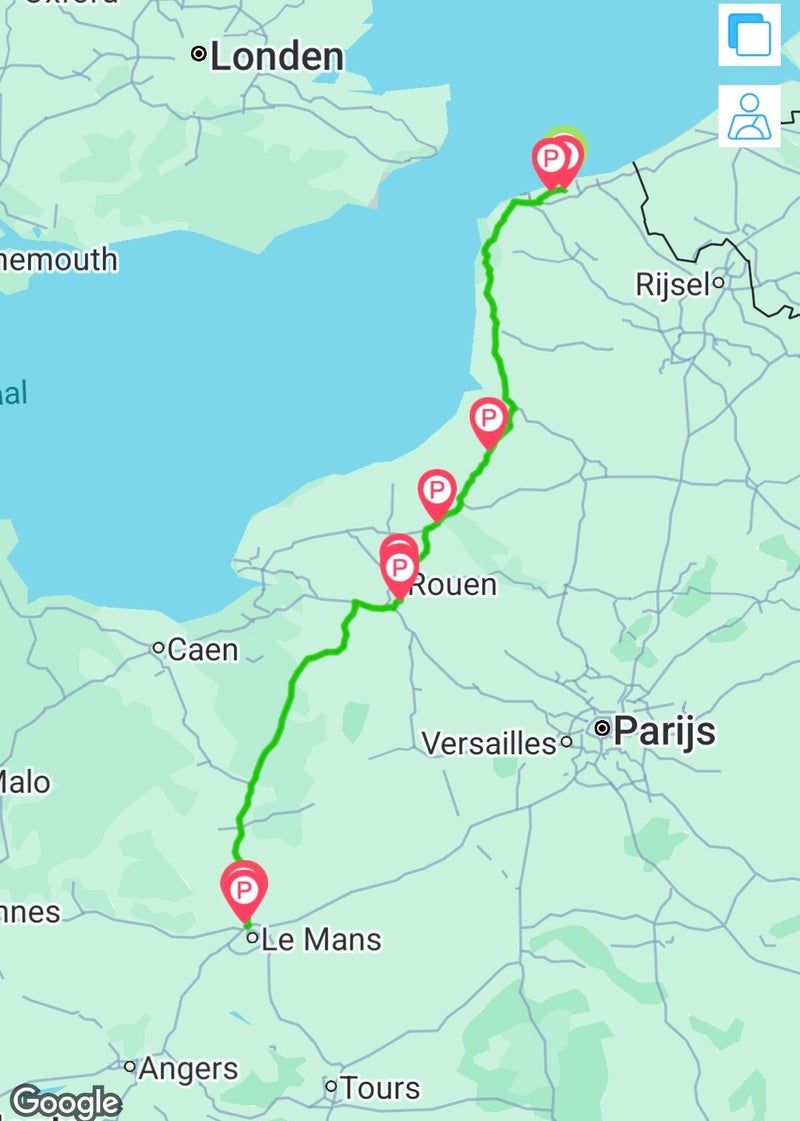 Vandaag zijn we vroeg opgestaan, om 07:00 uur, met als doel op tijd te vertrekken richting Honfleur, een rit van 495 kilometer.