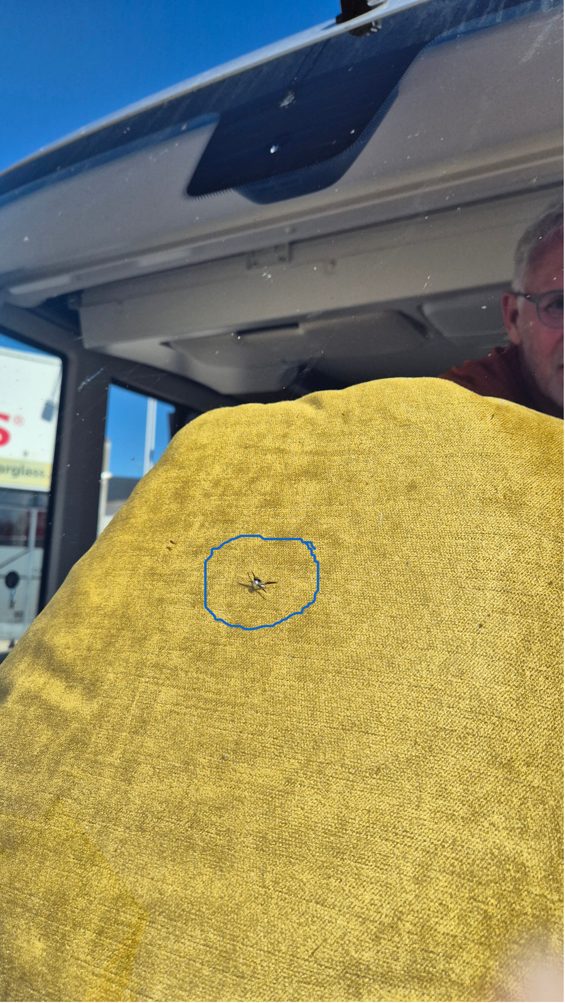 Daarna zijn we naar Carglass gereden. Gelukkig waren zij open en konden ze ons helpen. Voor €150,00 hebben ze het sterretje met een vacuüm-injectiebehandeling gerepareerd. Opgelucht konden we onze reis weer vervolgen.