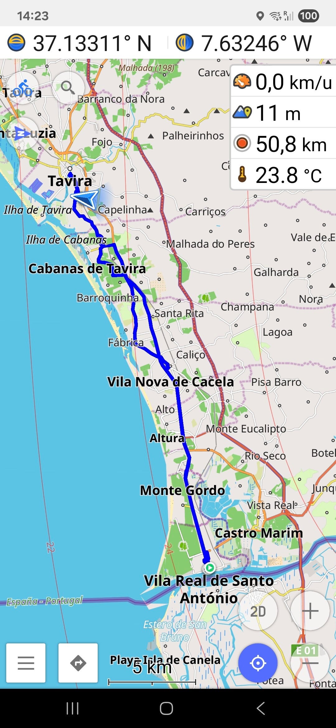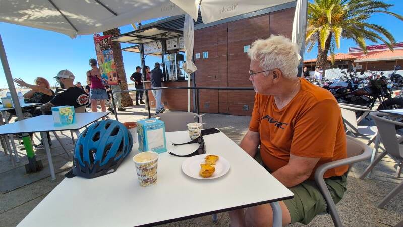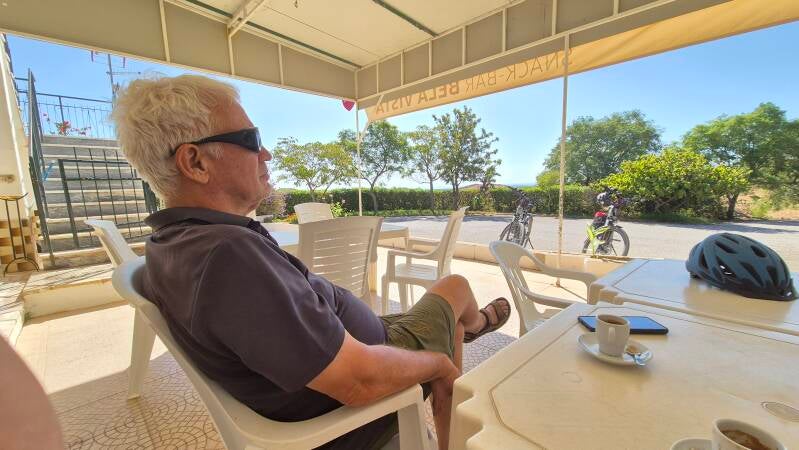 Vervolgens fietsten we door naar Cacela de Velha. Het was daar echter zo druk dat we besloten door te gaan naar Fabrica, waar we genoten van een kop koffie.