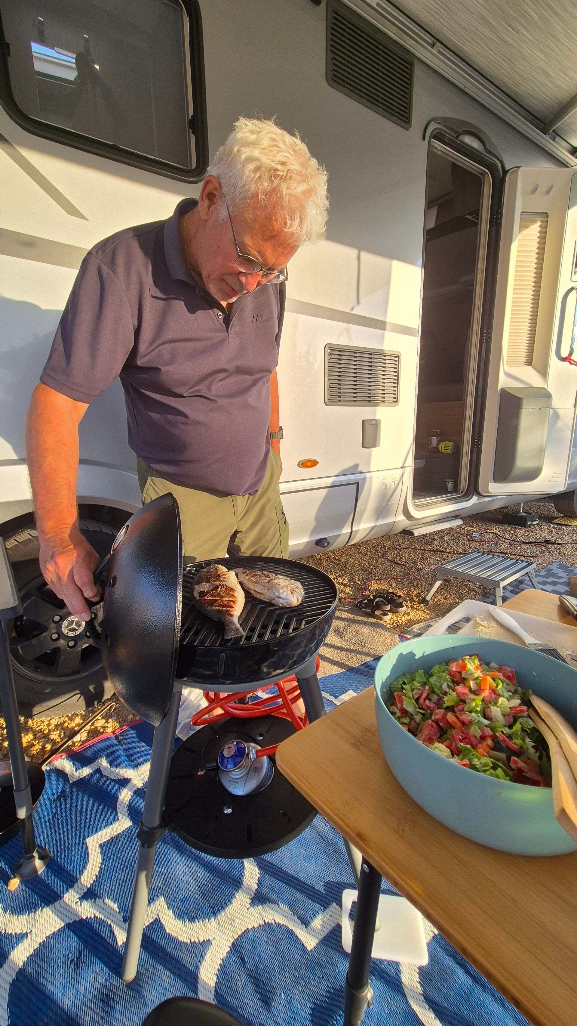Vandaag hebben we het lekker rustig aan gedaan. Het was heerlijk fris om vanmorgen in de schaduw voor de camper te zitten.