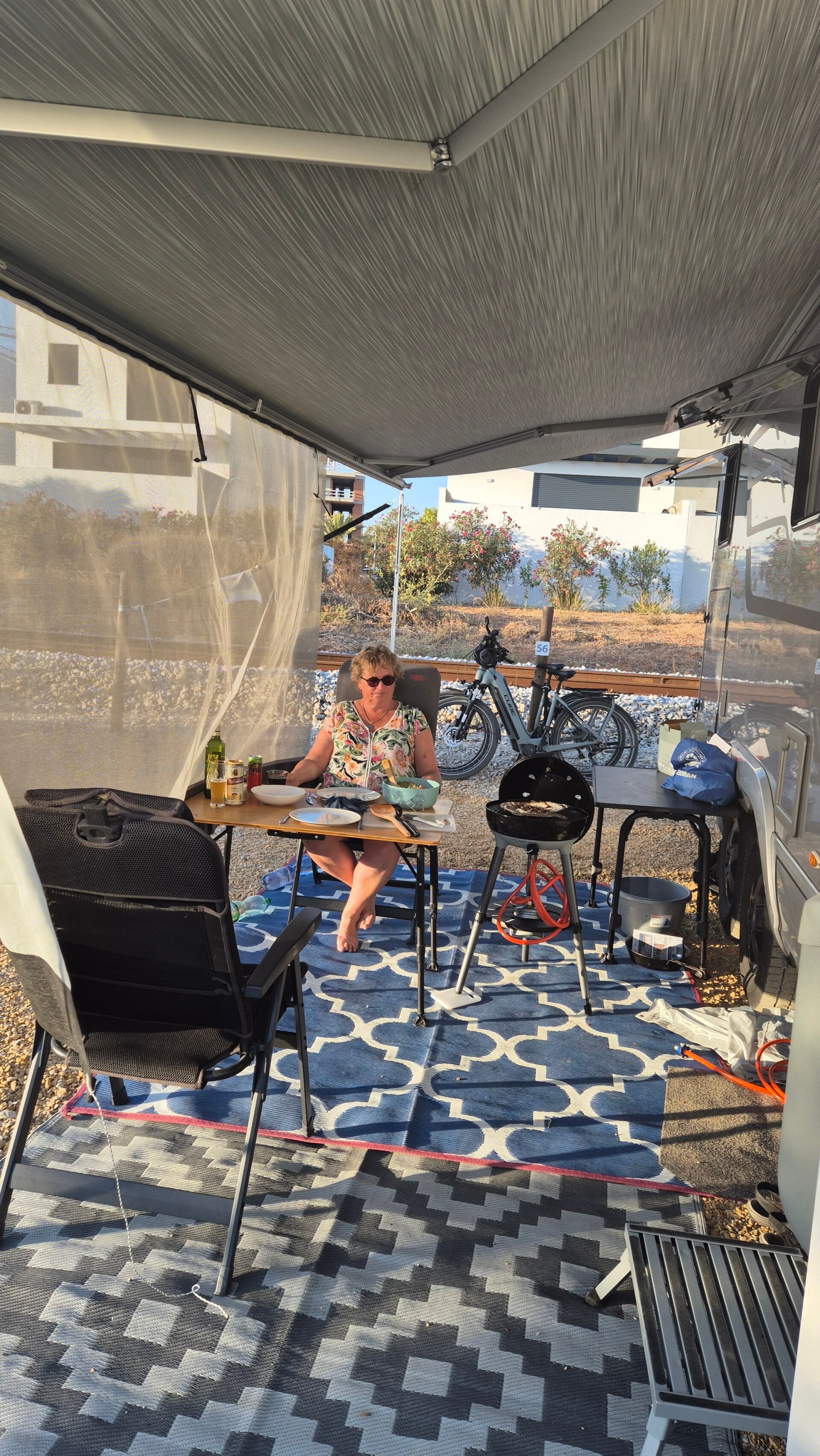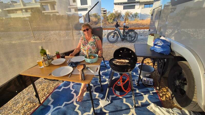 Via Cabanas fietsten we terug naar de camper. Daar hebben we een broodje gegeten en lekker buiten gezeten. Dankzij een aangenaam briesje was het heerlijk vertoeven.