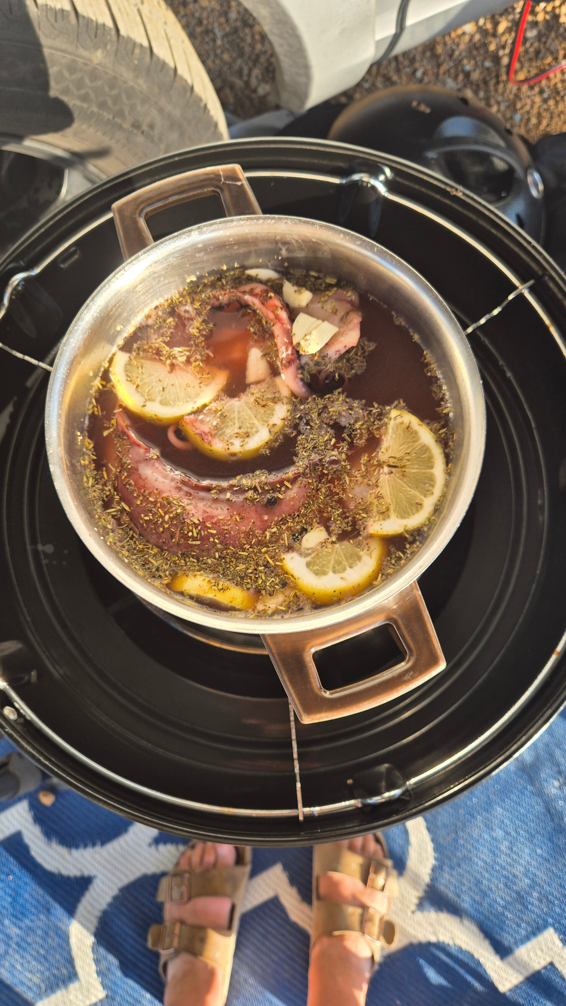 Vanmiddag gaan we weer Inktvis klaar maken wat we opeten met een salade.