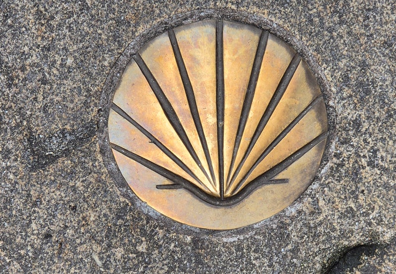 Vroeger gebruikten pelgrims de schelp om water te drinken uit beekjes. Tegenwoordig heeft de schelp ook een spirituele betekenis: de lijnen op de schelp symboliseren de vele pelgrimsroutes die uiteindelijk samenkomen in Santiago de Compostella.