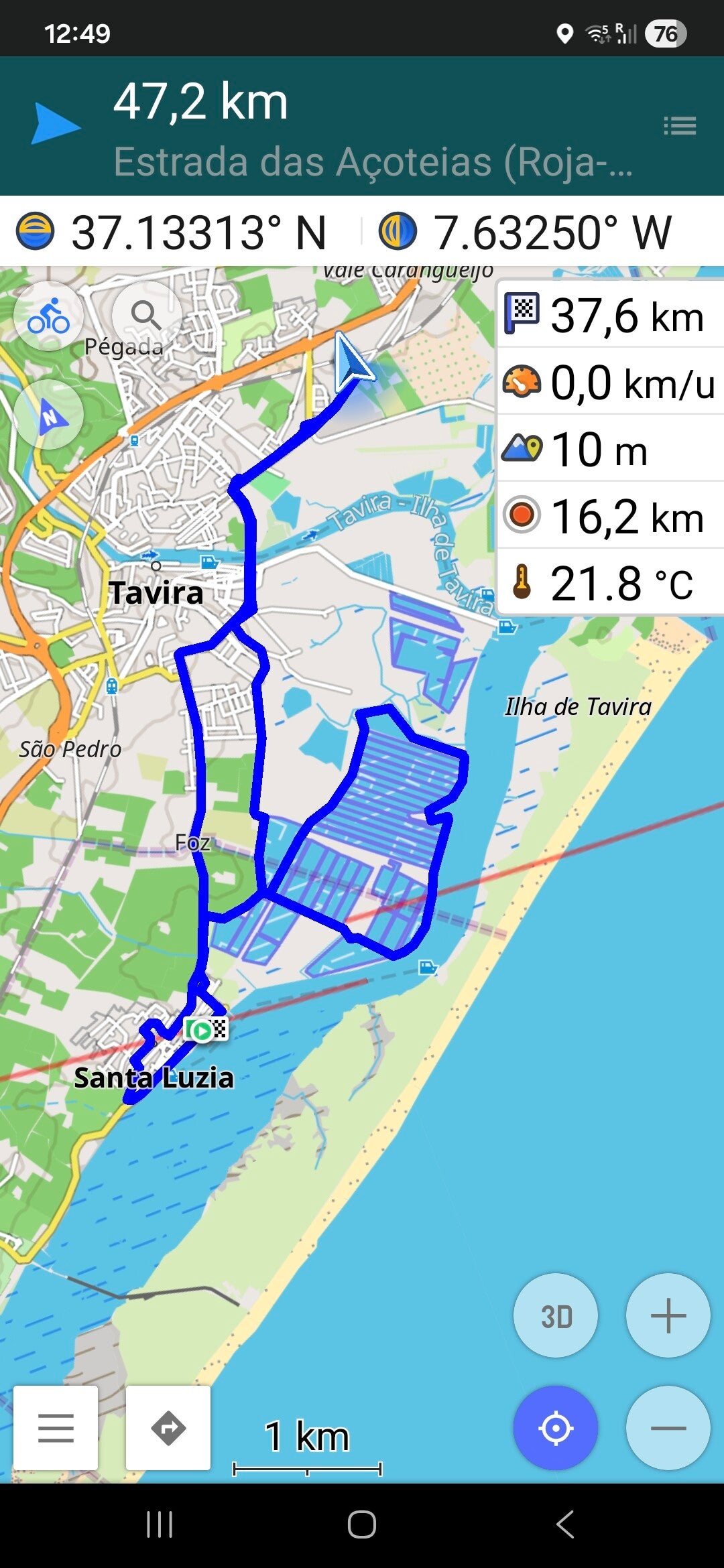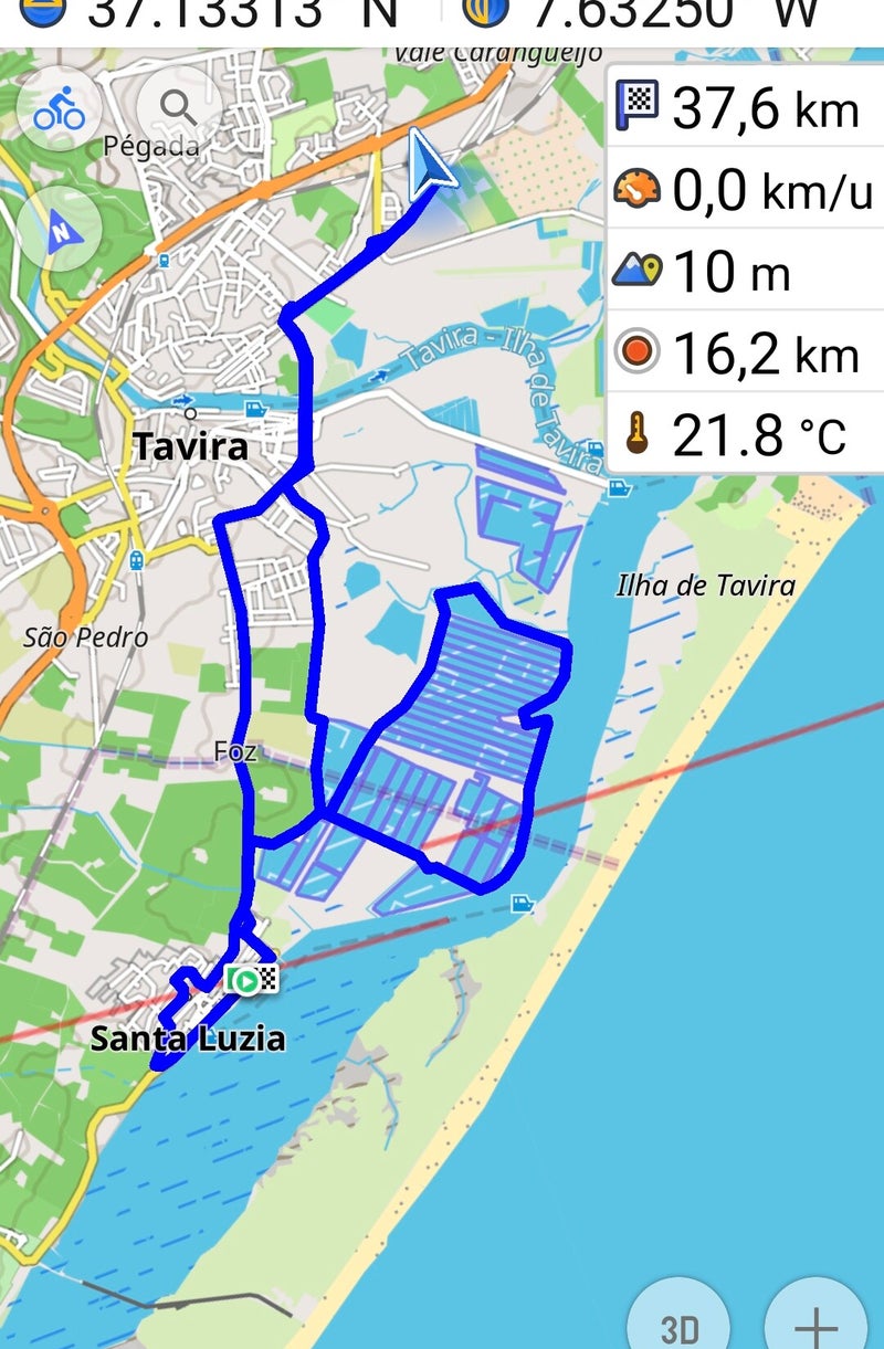 We gaan nog een mooie fietstocht maken naar Santa Luzia, waar we van plan zijn om bij een restaurant iets lekkers te eten.