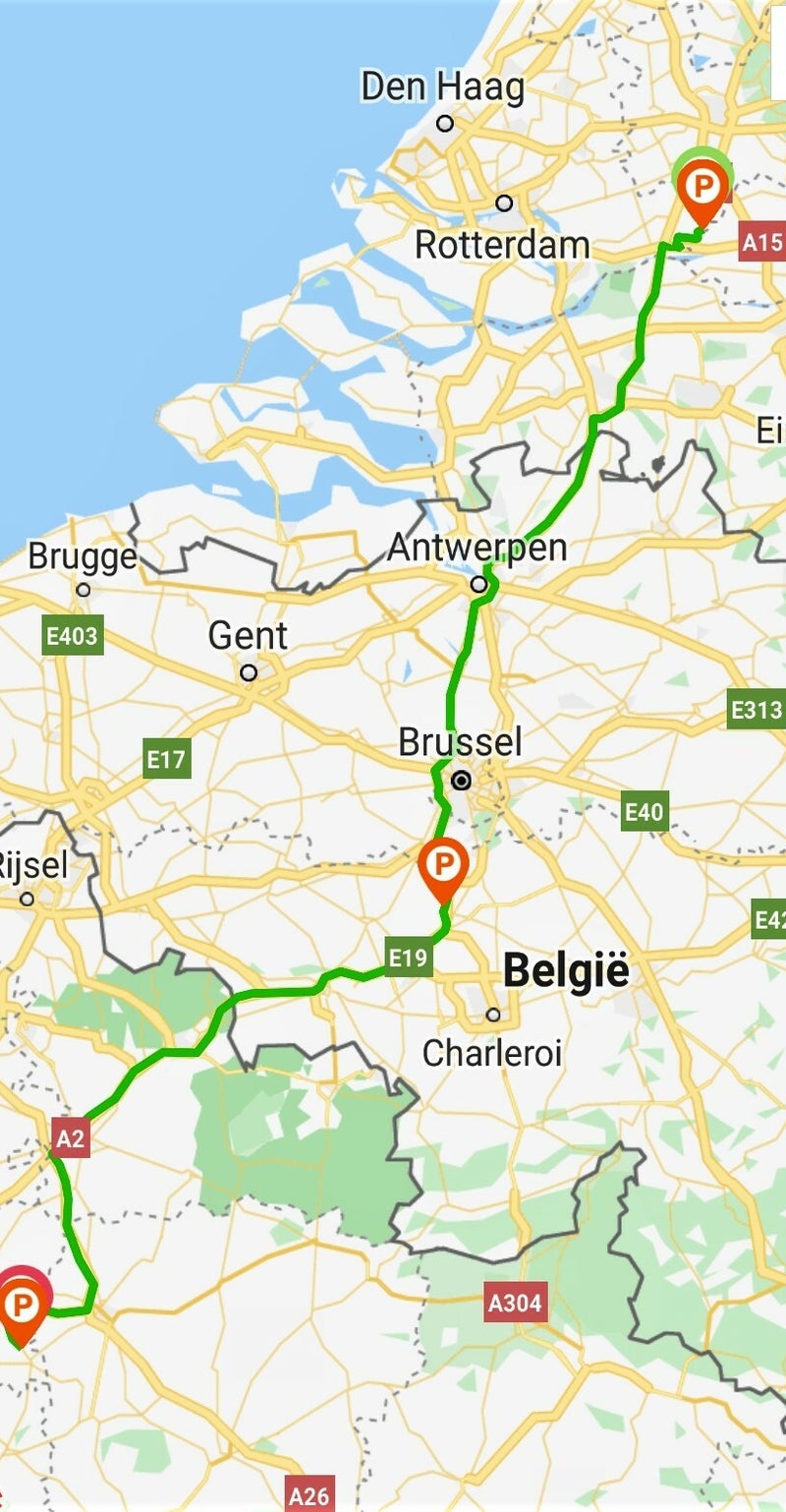 Om  11:30 zijn we weggereden bij de camper stalling en richting Antwerpen en Brussel gereden, het was erg druk en de weg was ook nog eens erg slecht "typisch Belgie"