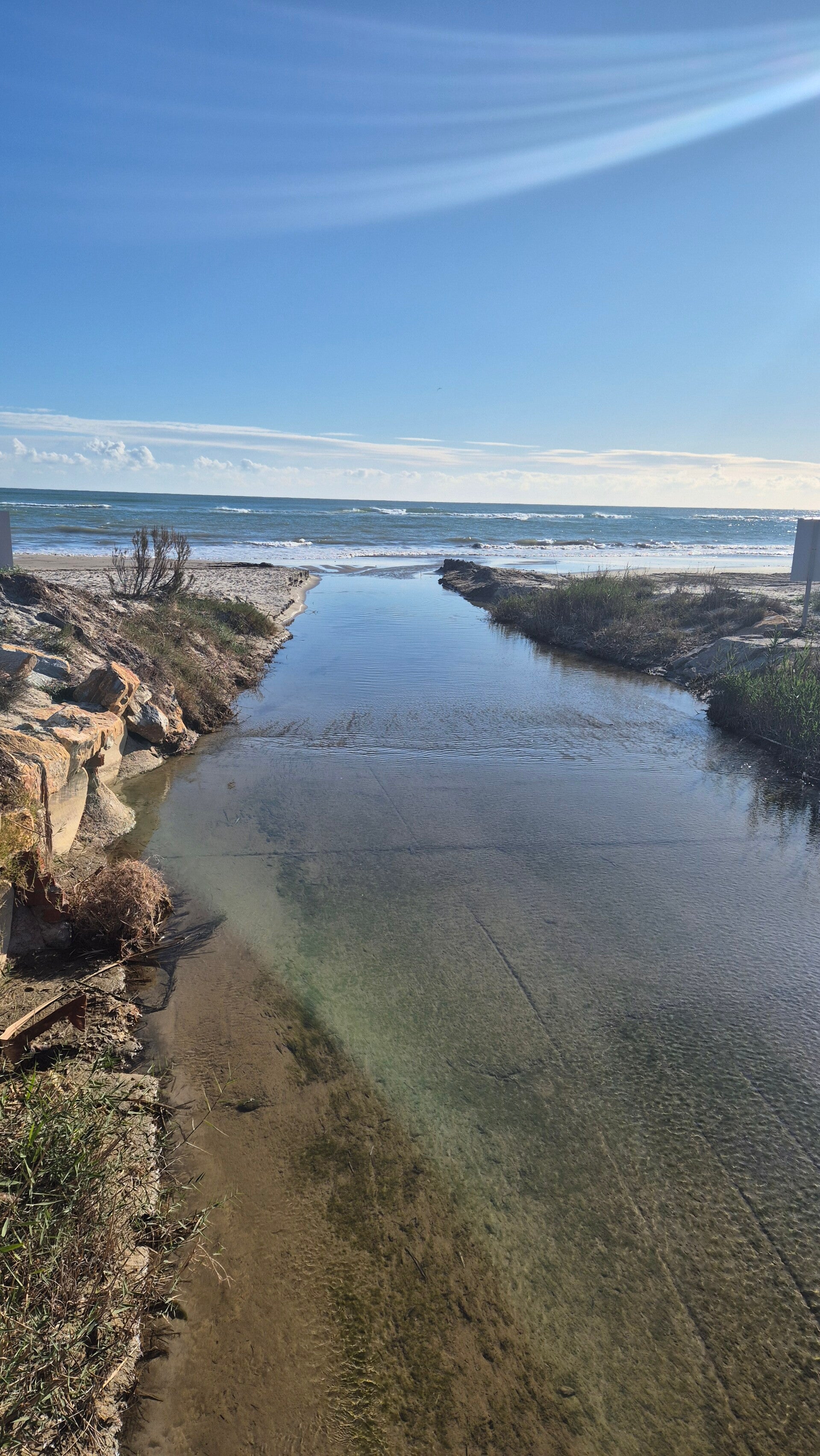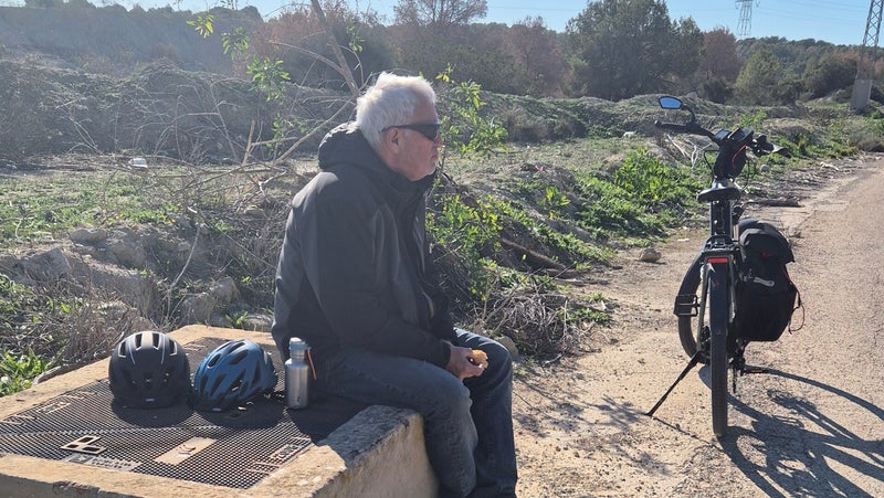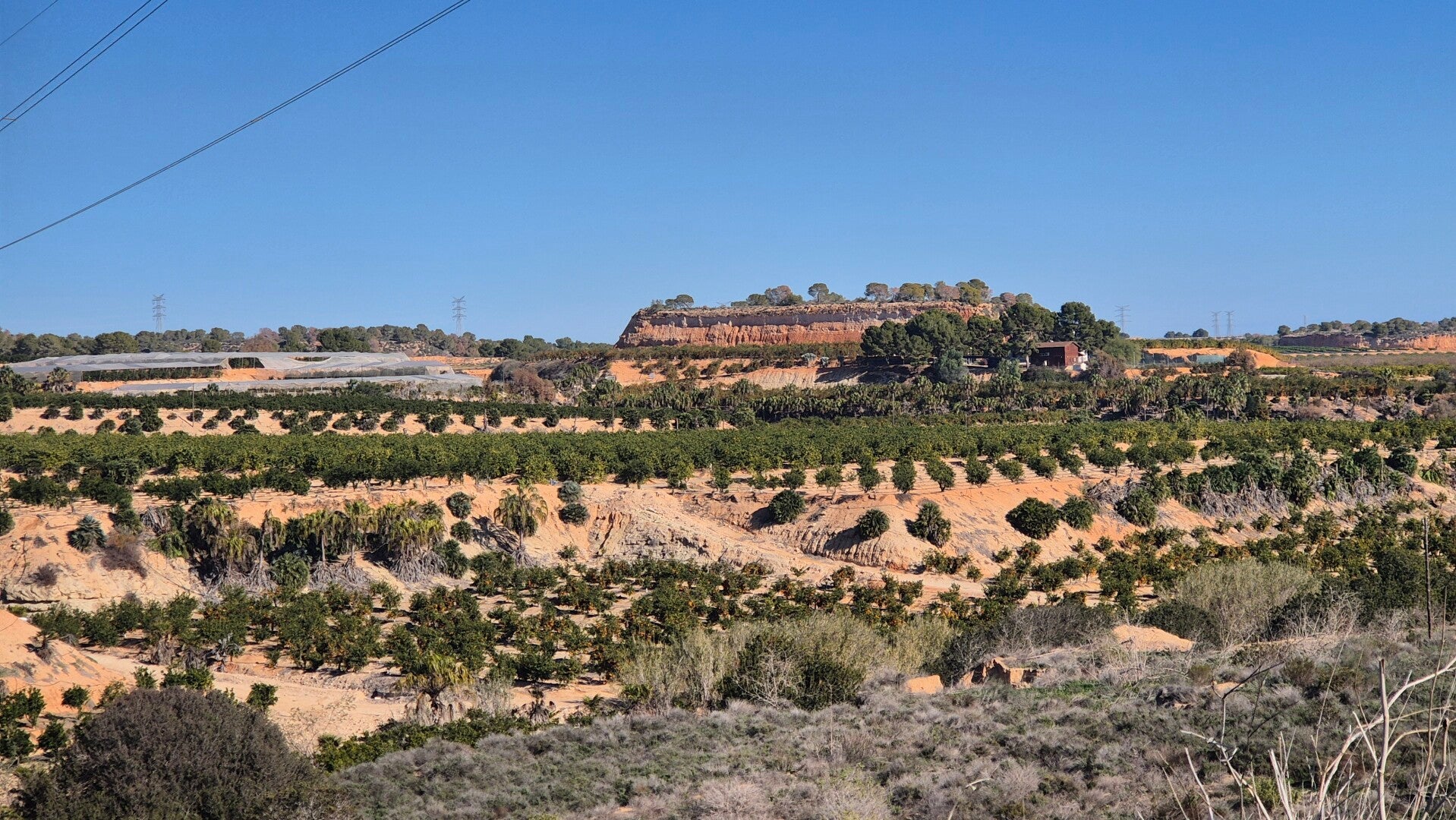 We kwamen langs het Canal de Riegos de Levante te rijden, een betonnen bak met zeer helder stromend water dat een blauwige kleur had, Het word gebruikt als irrigatie systeem om de sinaasappel boomgaarden en de groente teelt van water te voorzien. Er zwemmen soms nog grote vissen in.